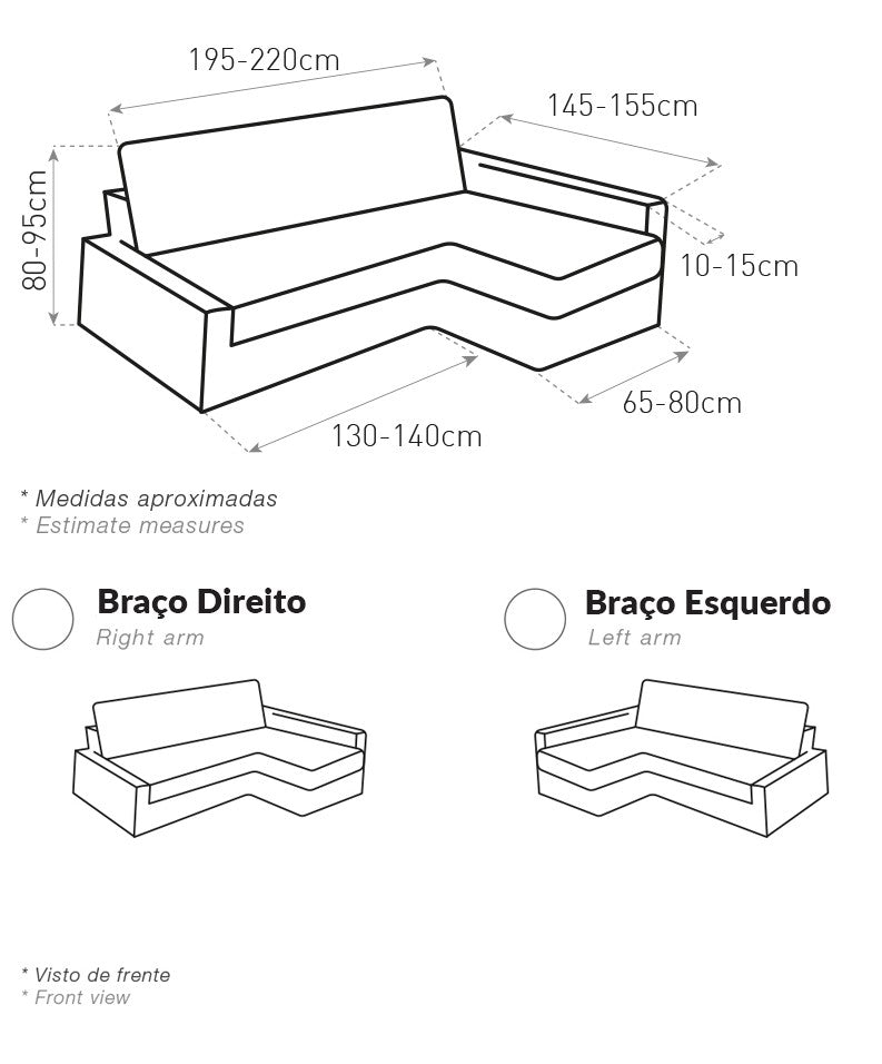 - IMPORTANTE: Para escolher corretamente o modelo certo, você deve ficar de frente para o sofá e escolher esquerda ou direita, dependendo da chaise longue.